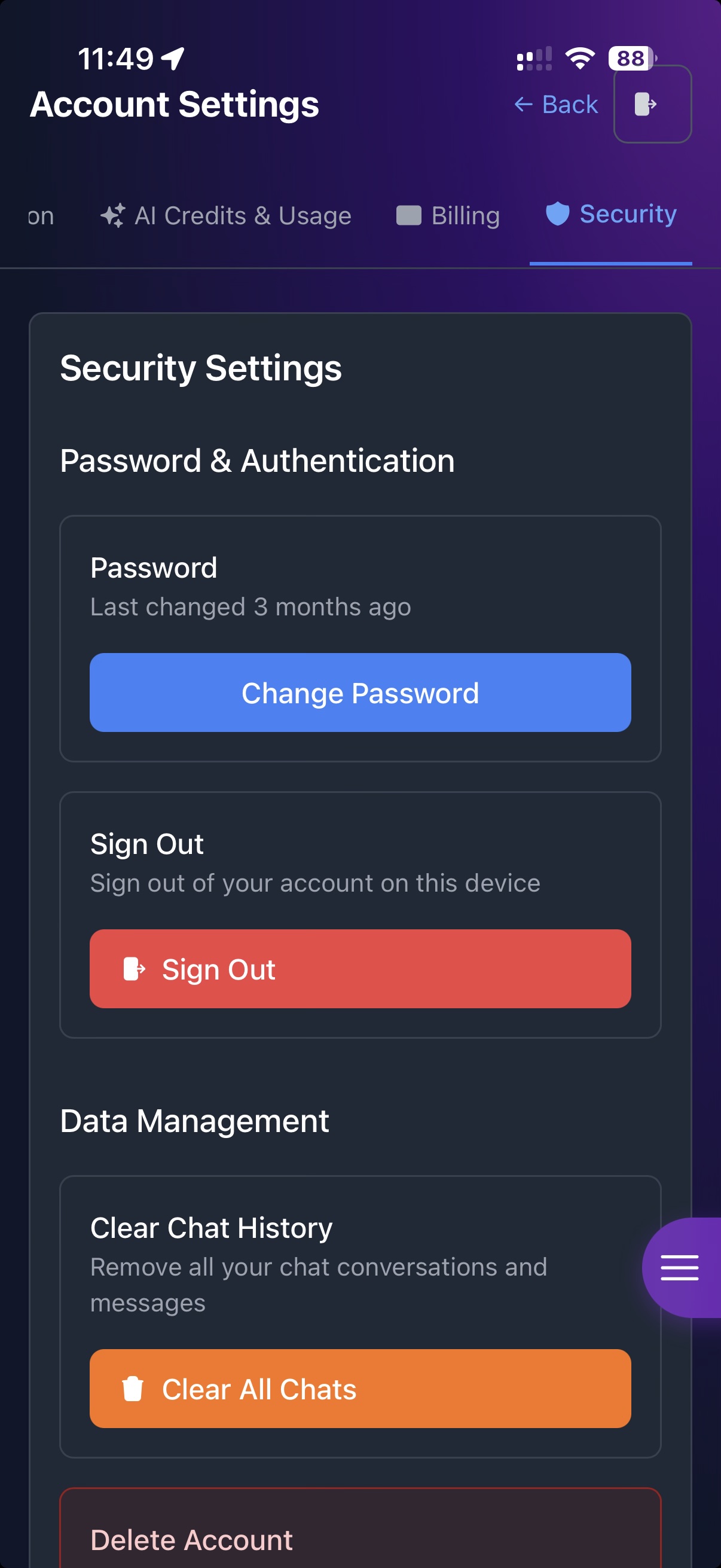 In the Security submenu, locate the option Clear All Chats.
