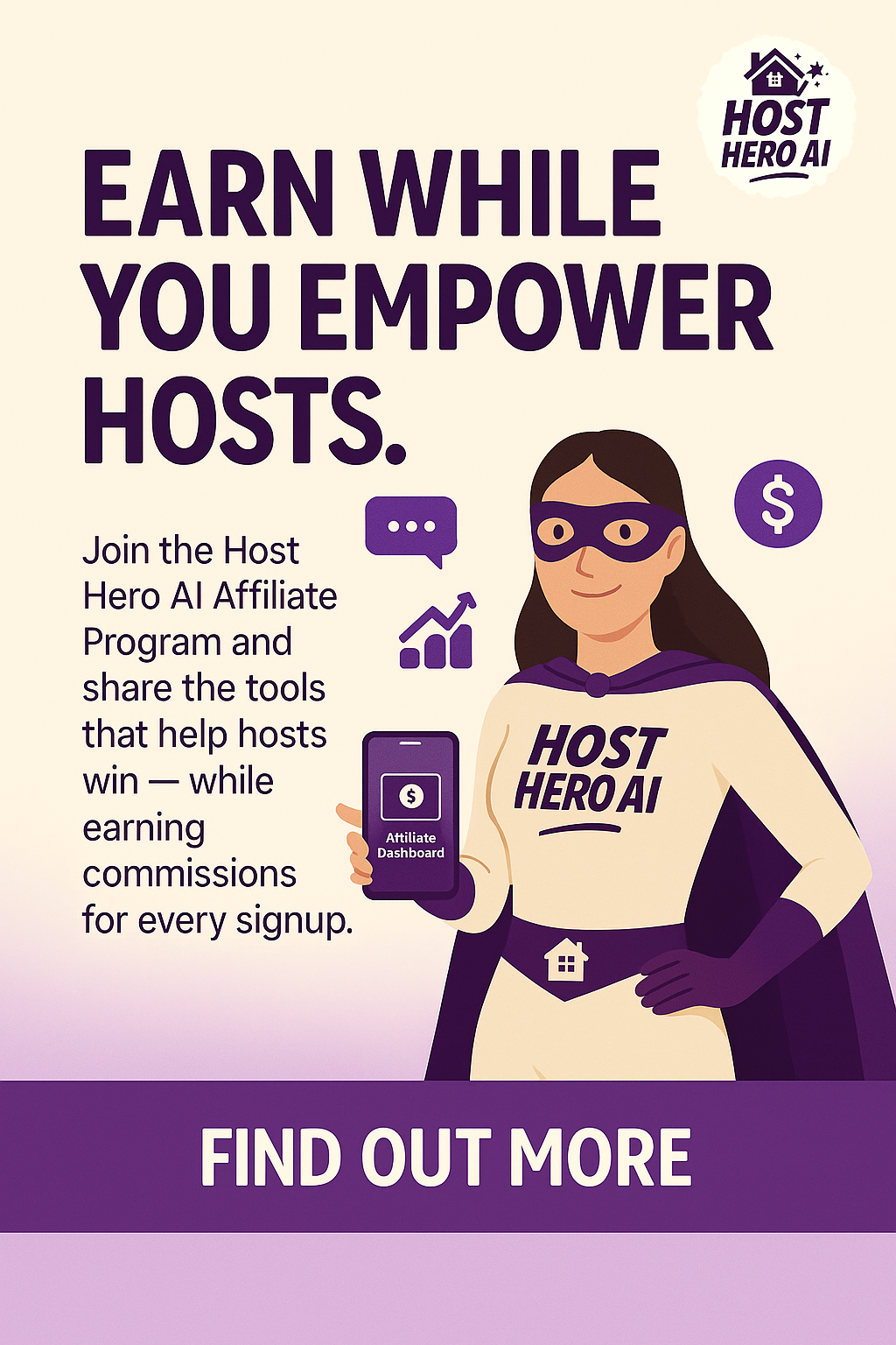 Host Hero AI is the world’s first all-in-one learning and mentoring platform built specifically for Airbnb and short-term rental (STR) hosts. The affiliate program invites you to partner in this fast-rising sector, sharing a trusted tool while earning recurring income.